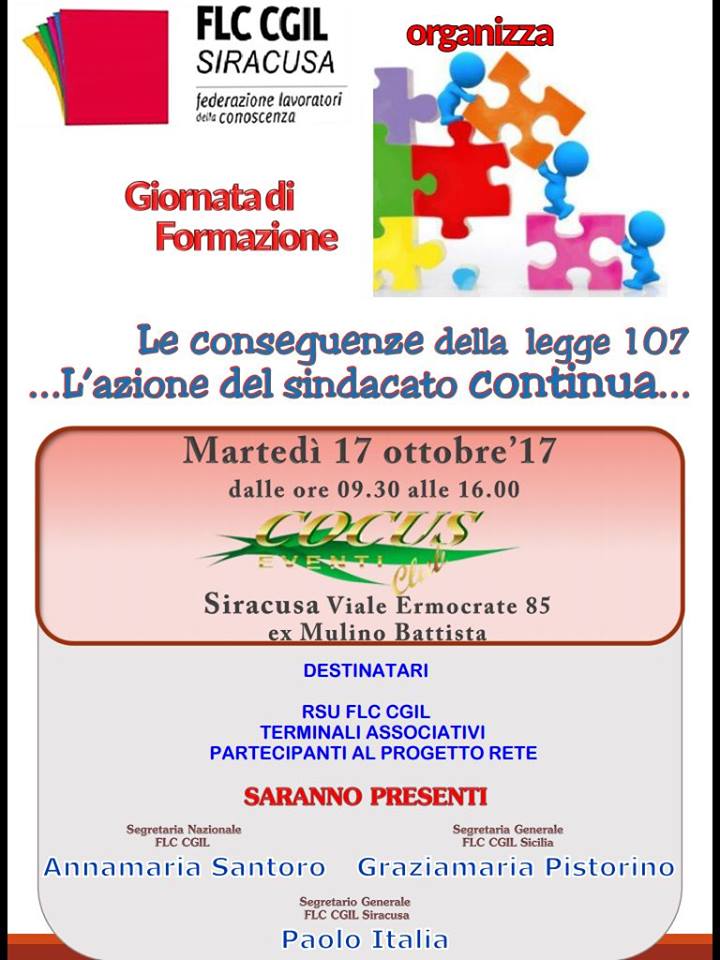 La FLC CGIL di Siracusa organizza un seminario di formazione per RSU, Delegati Sindacali e partecipanti al Progetto Rete sulle attività di contrattazione all'interno delle istituzioni scolastiche a seguito della L.107 e di tutte le più recenti iniziative normative.